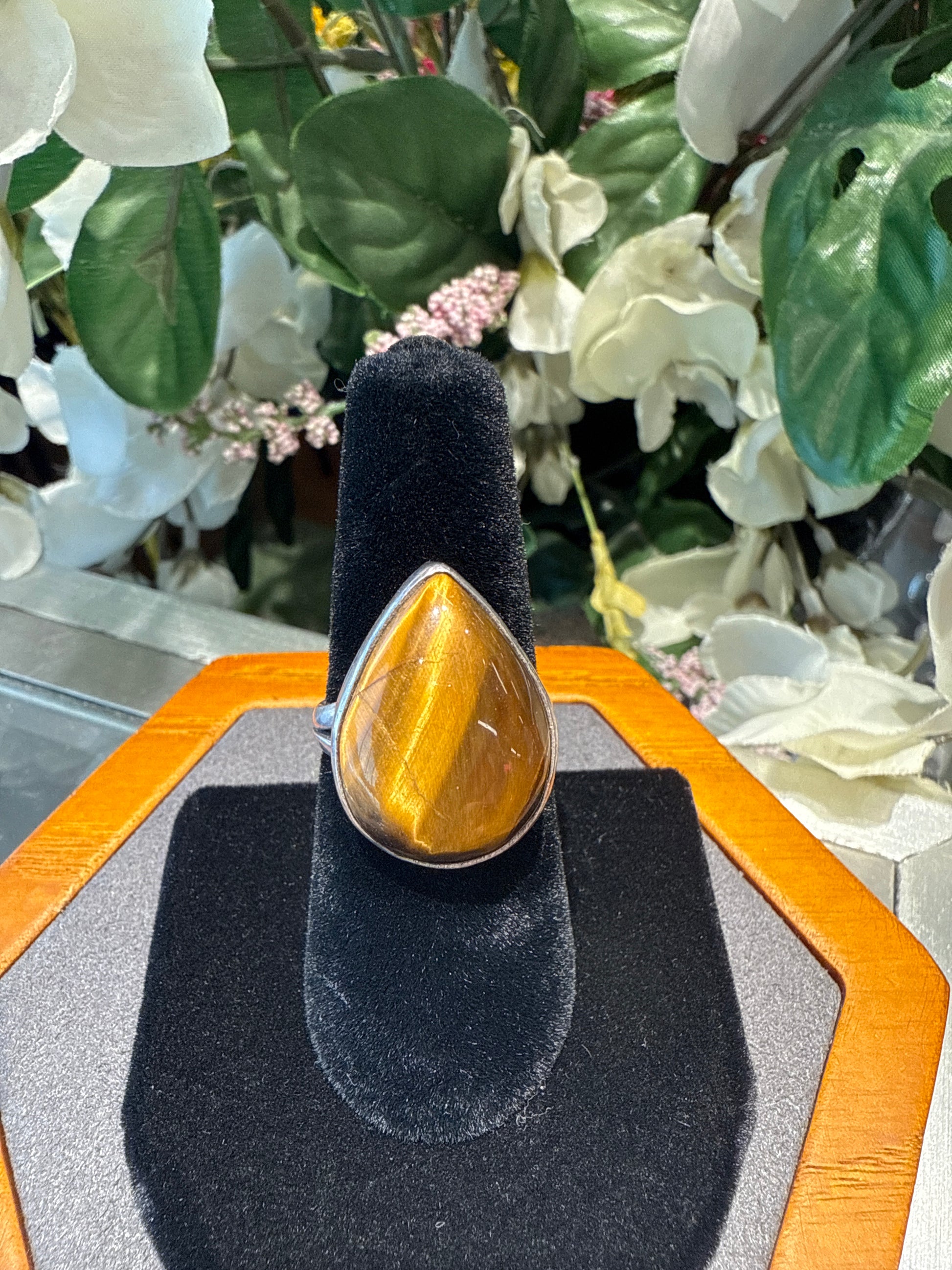 7.4g Tigers Eye Stone Ring Silv-925