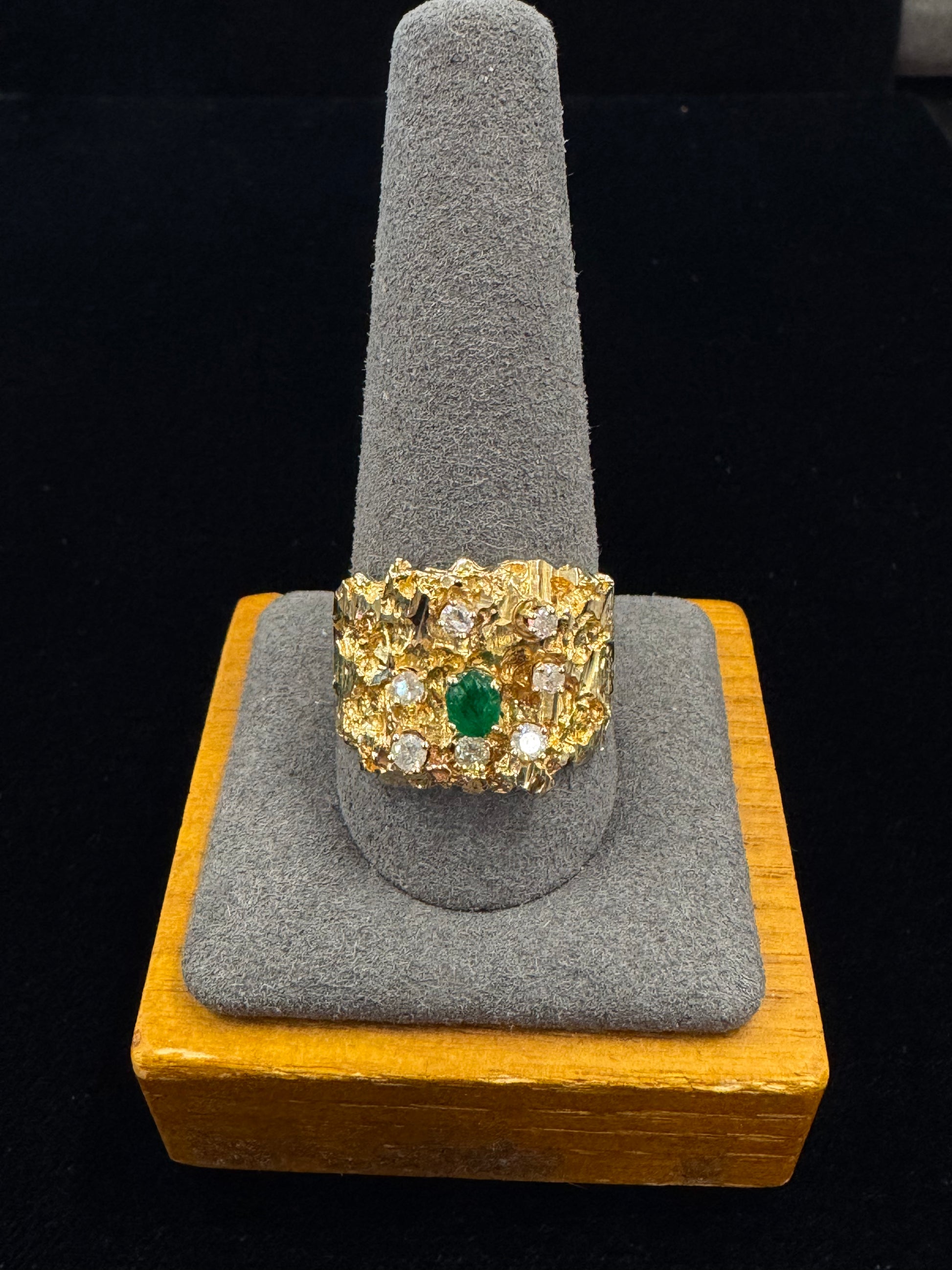 14 kt 7.4 grams, .07ctw w/ green stones , size 11