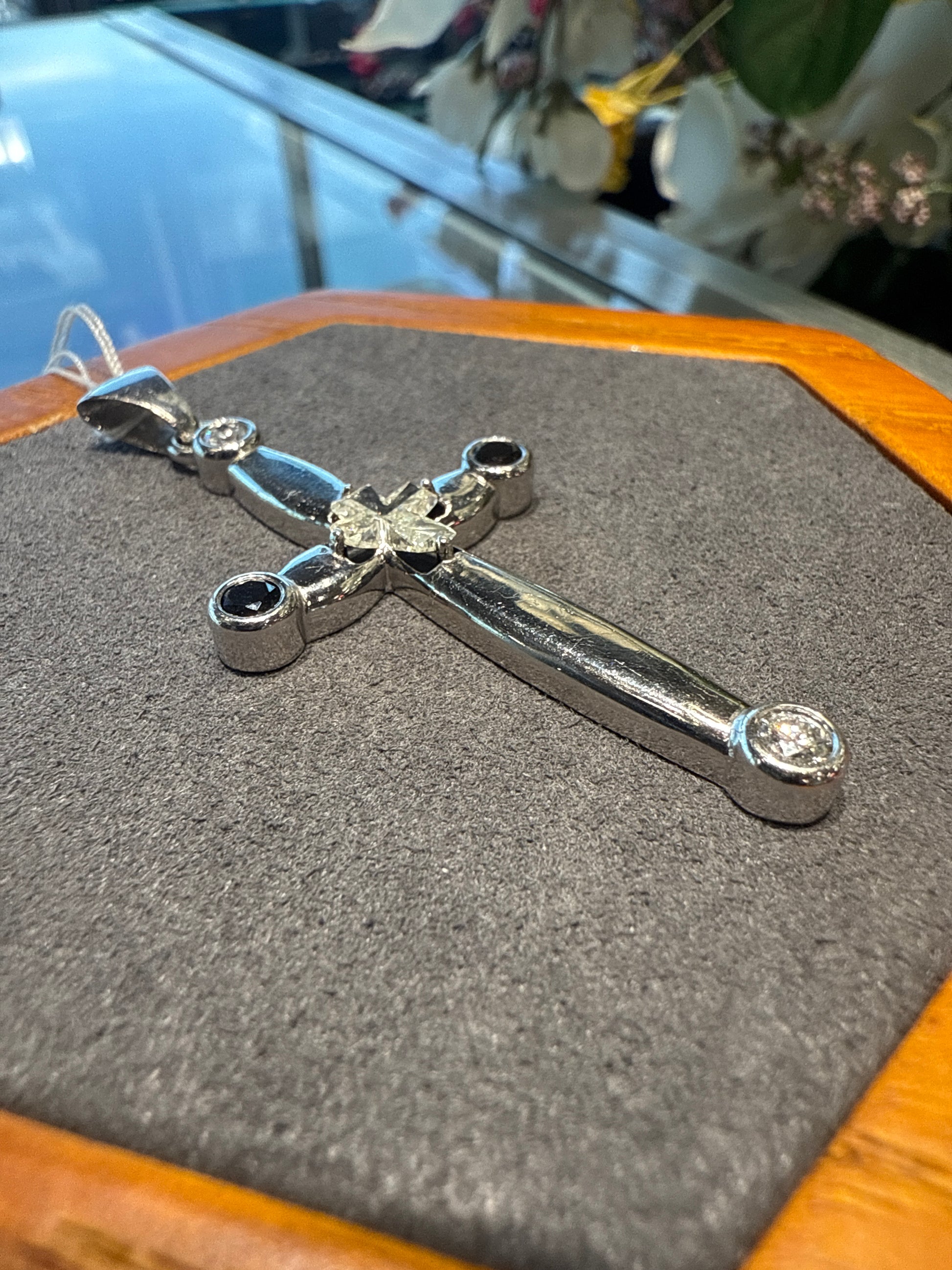 Platinum 950 11g cross w/ 1 cross cut diamond 0.65ctw, 2 round brilliant cut diamonds 0.30ctw, 2 round brilliant cut diamonds 0.20ctw