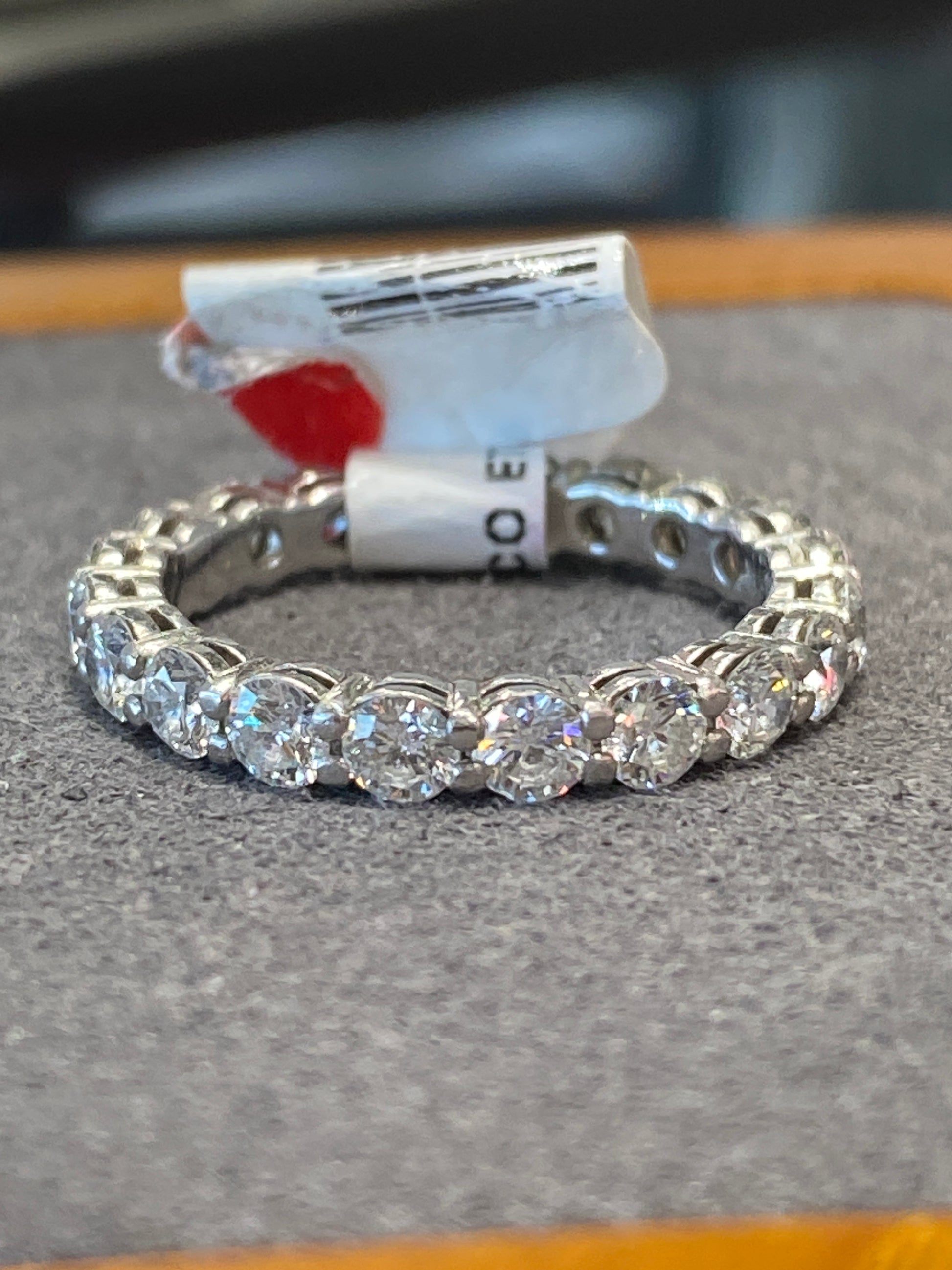 3.8 Grams Of Platinum Diamond Eternity Band. Diamond Band Has 20 Round Diamonds That Weigh 1.64CTW. Diamond Eternity Band Is A Size 5 & Comes With A Tiffany & Co Box.