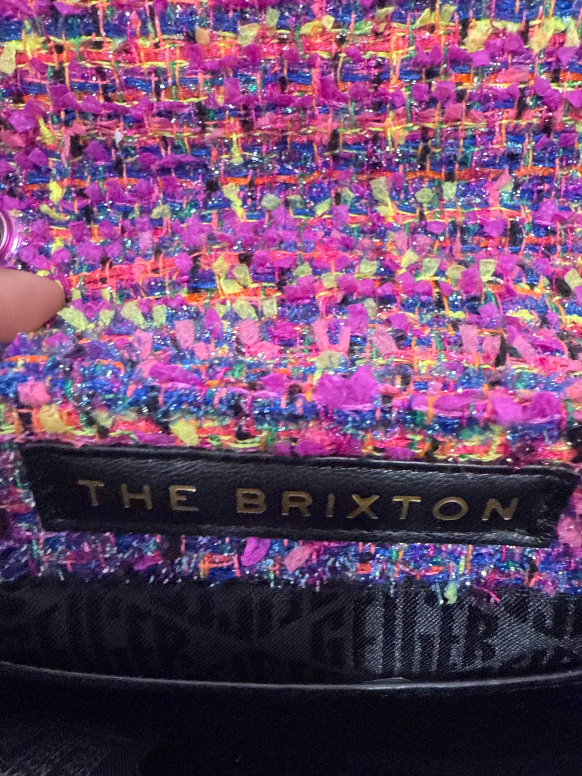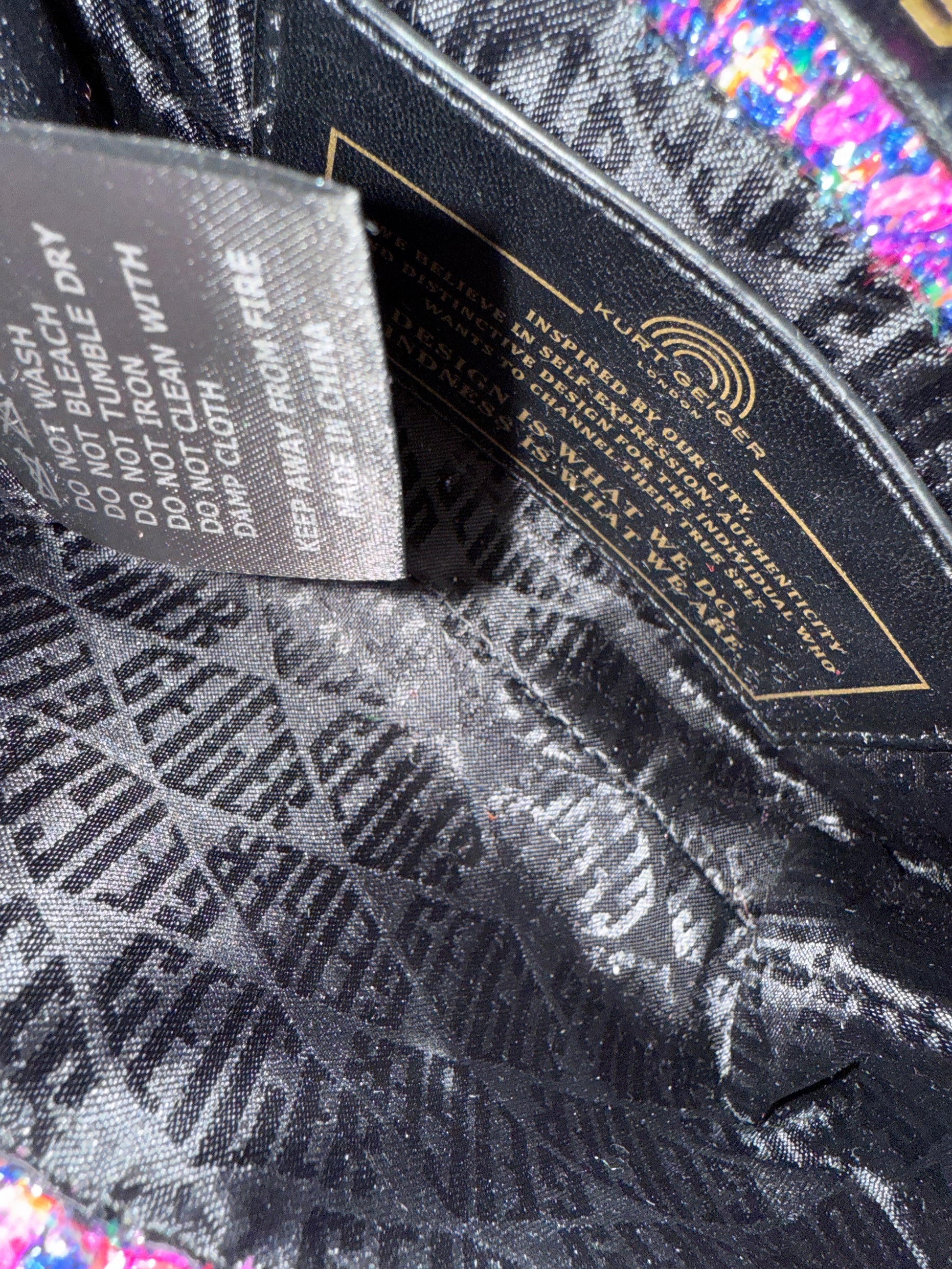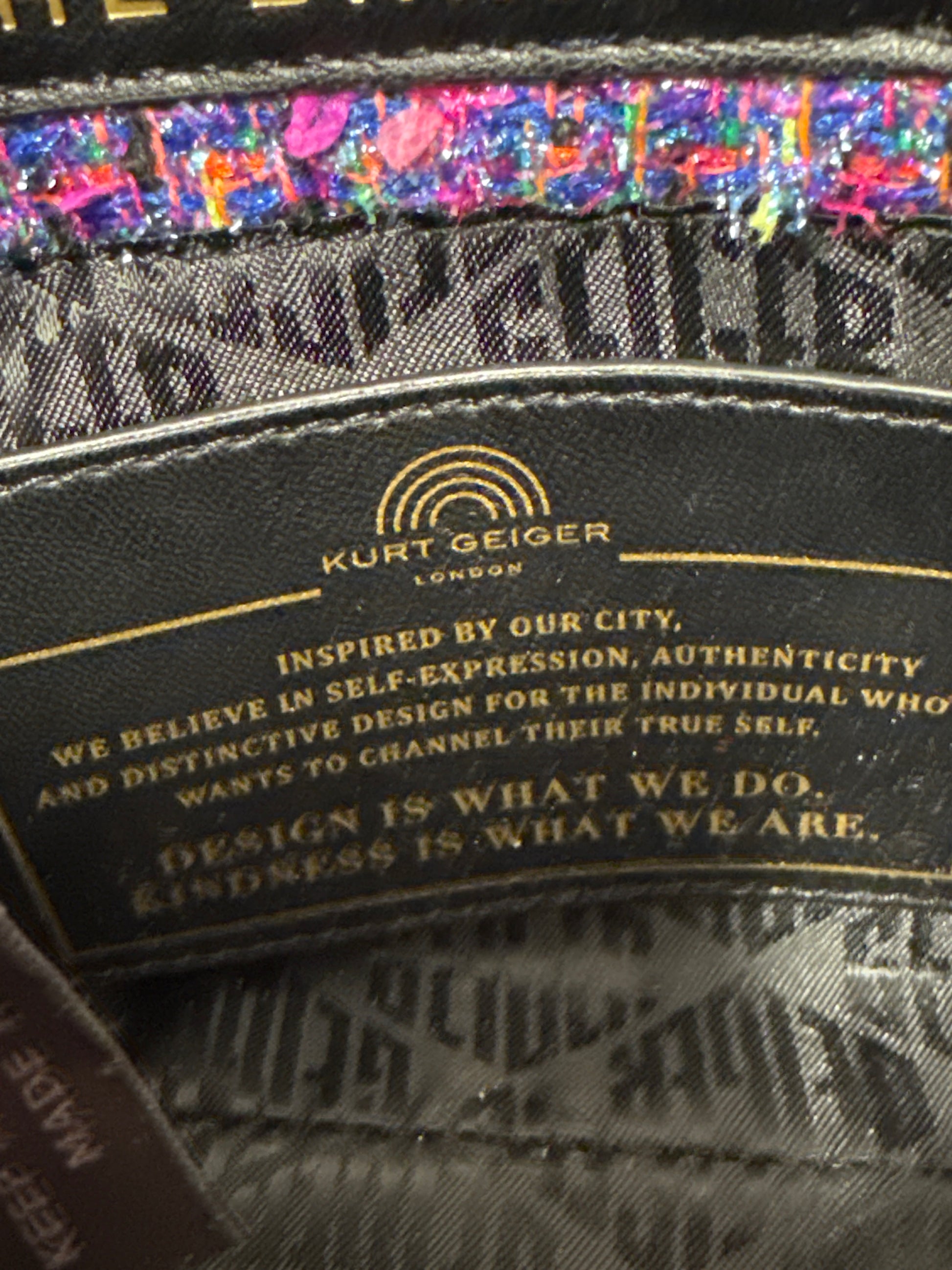 New Kurt Geiger Handbag Purse with tweed fabric with a textured pink/Purpleish chain strap and matching turn-lock.