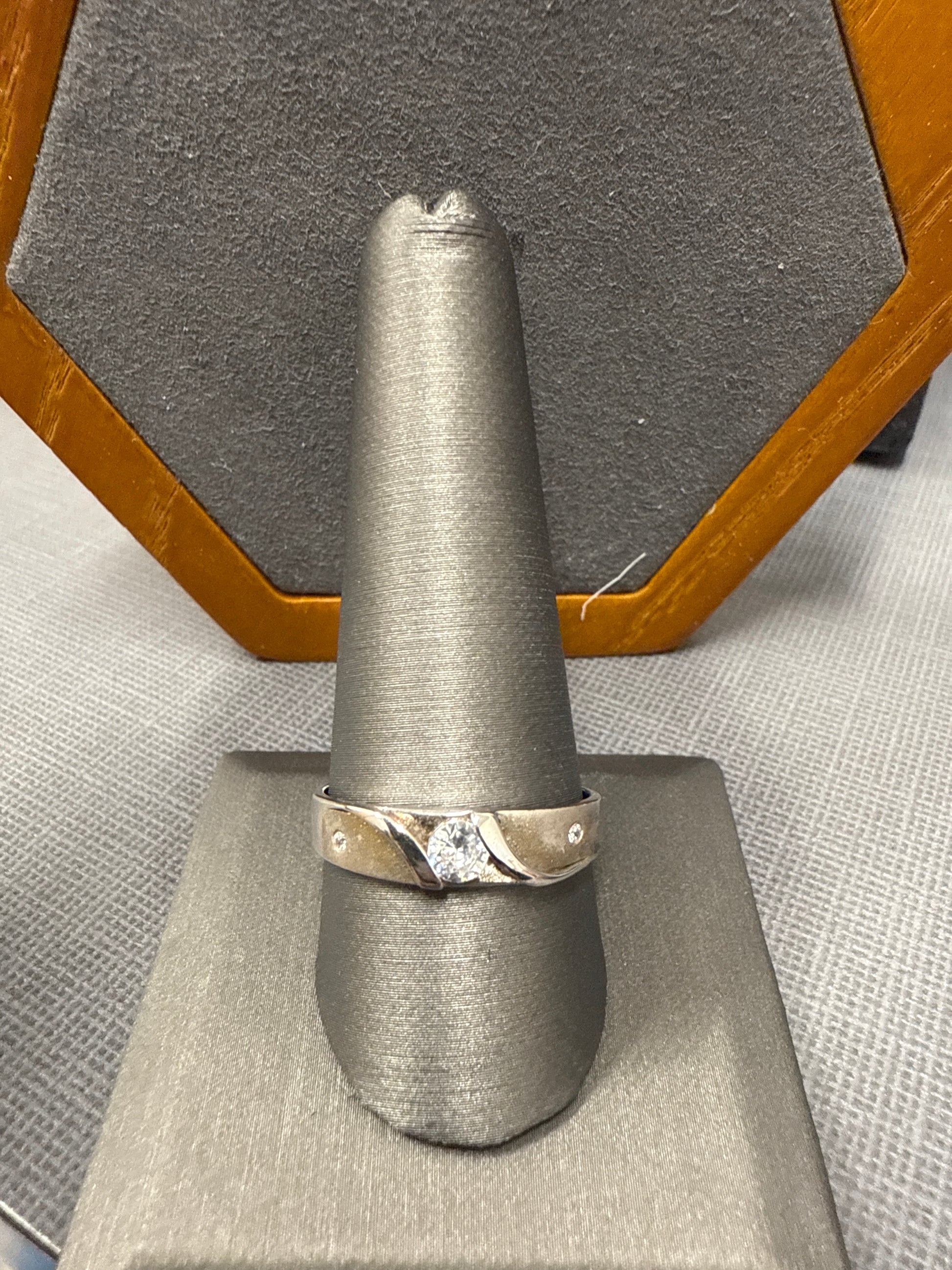 Silver 925 2.3g band with 3 cubic zirconias size 9