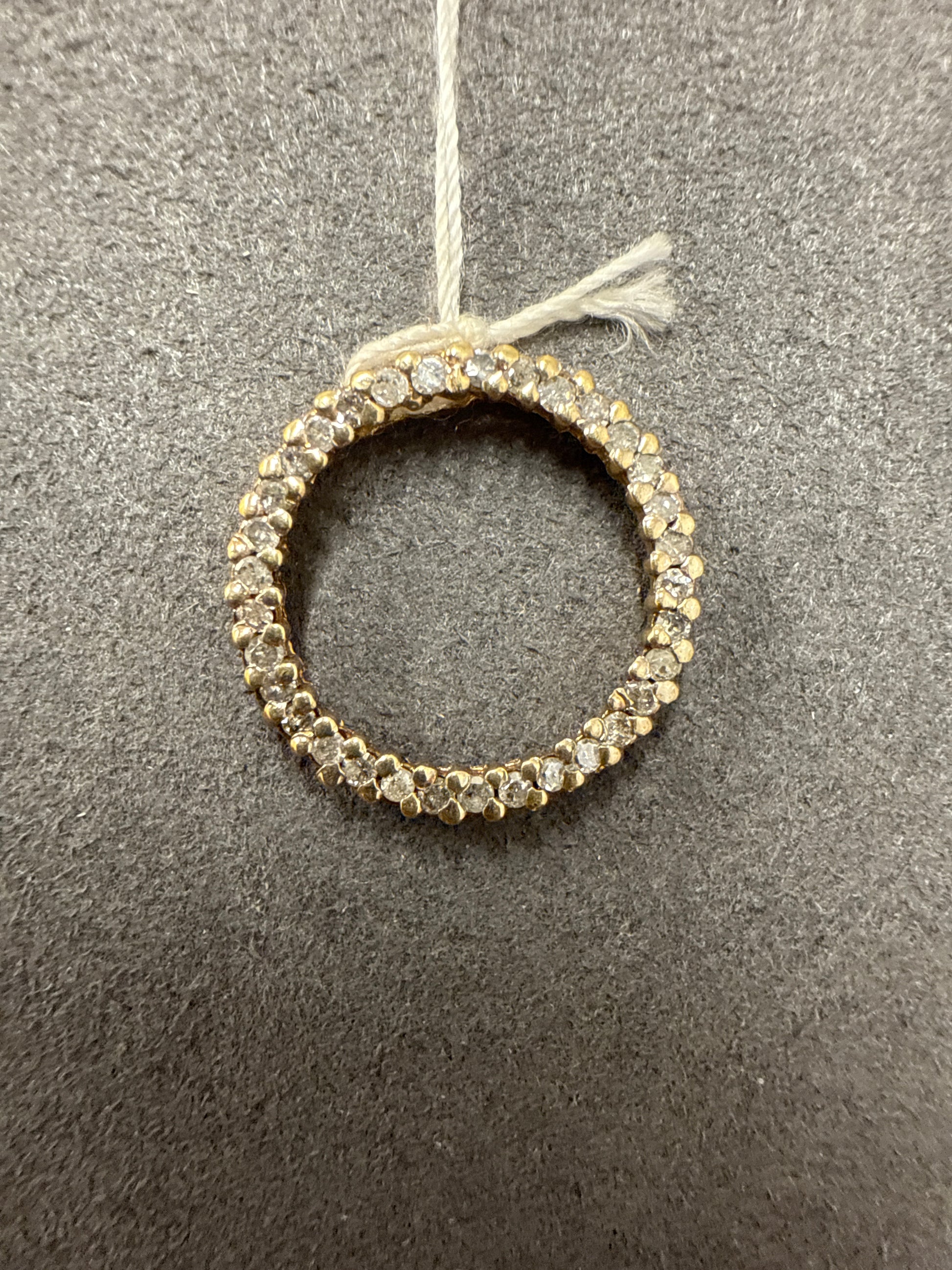 S925 sterling silver yellow gold circle charm w/ small diamonds 2.2g