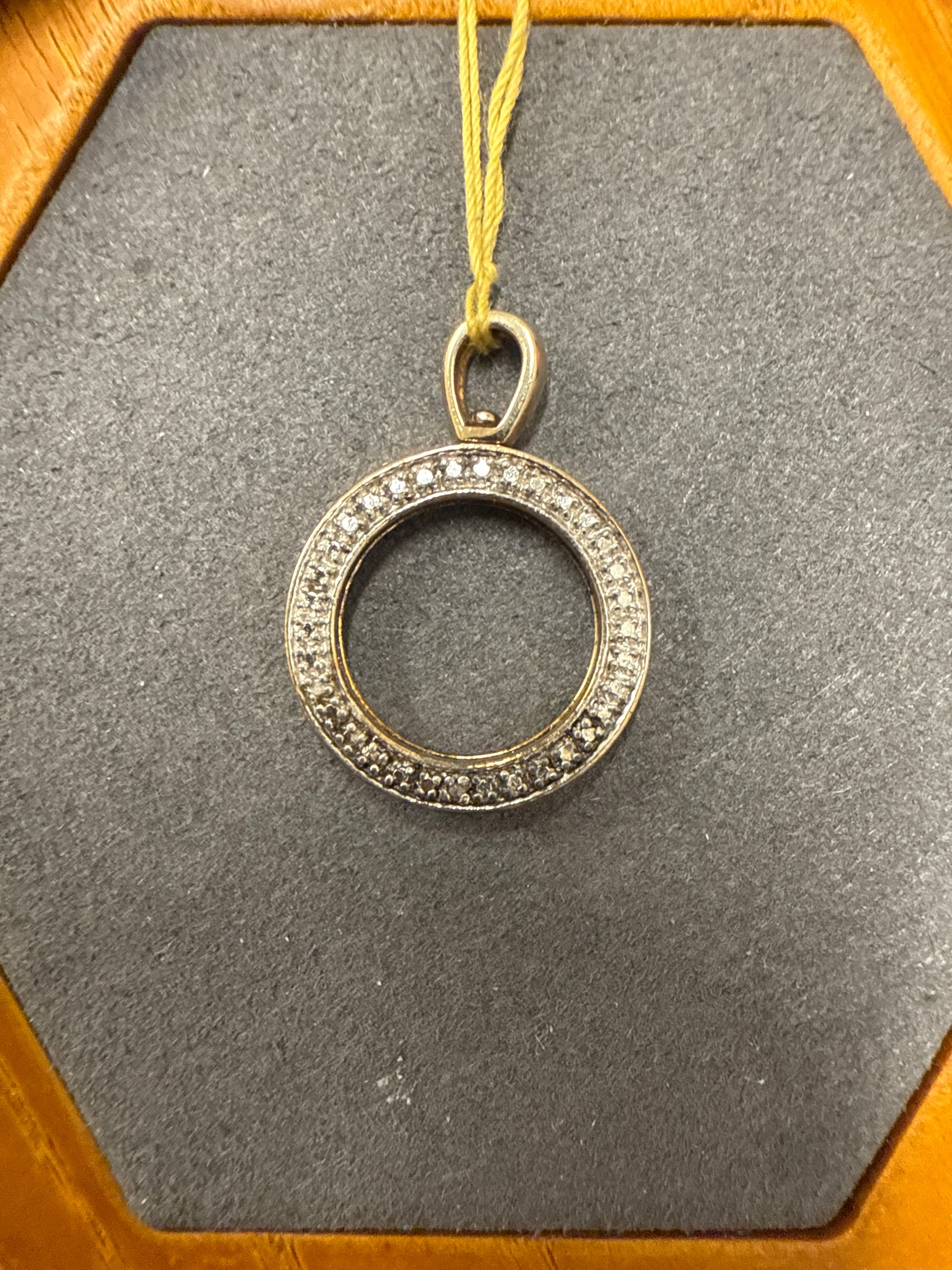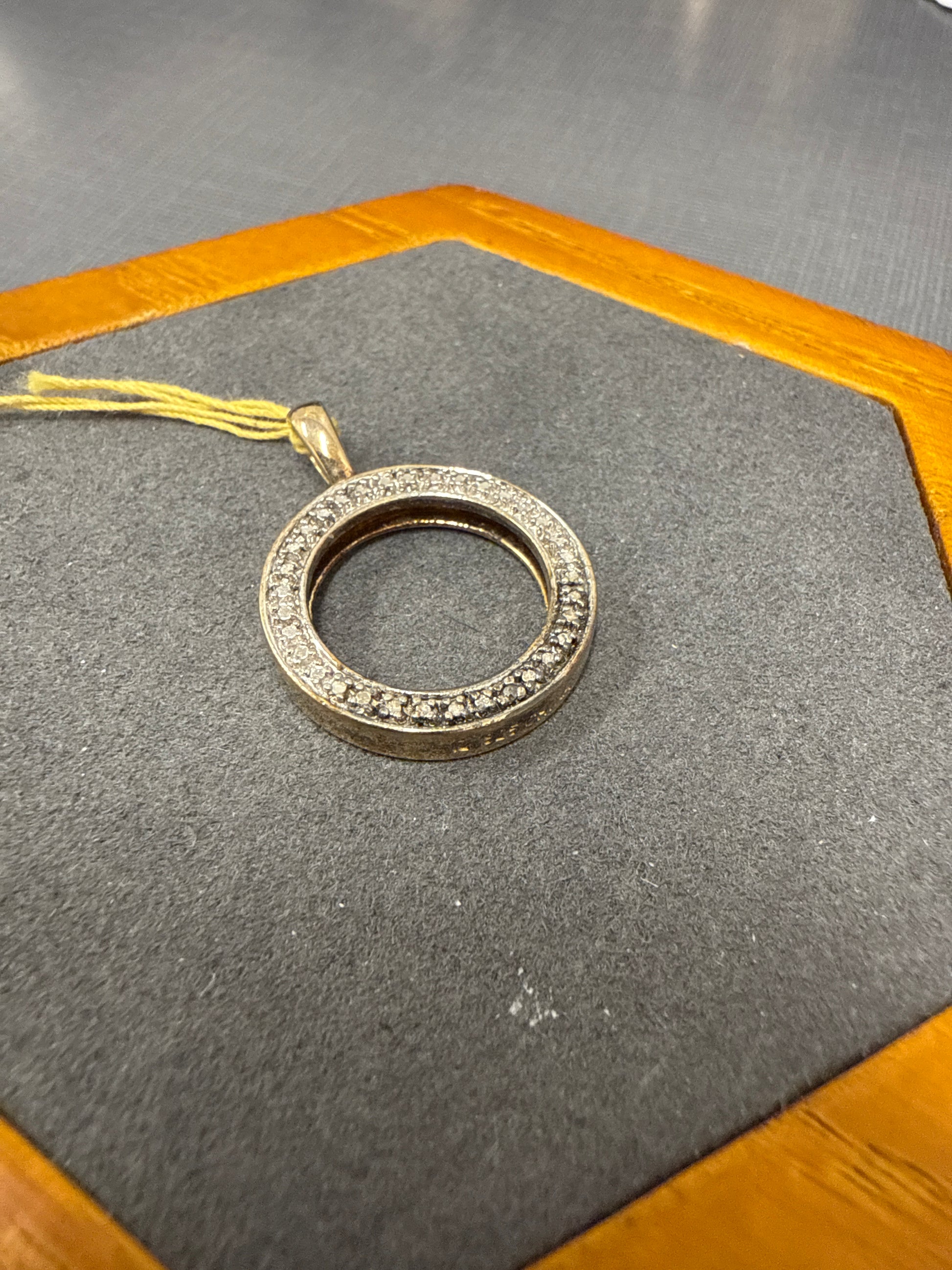 S925 sterling silver circle charm w/ yellow gold plating and small diamonds 4.2g