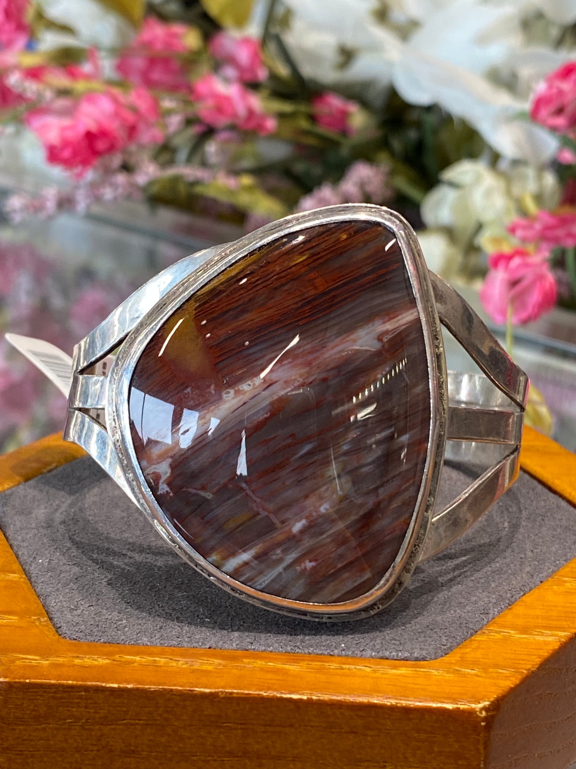 45.5 Grams Of 925 Silver Cuff Bracelet With A Colored Stone.