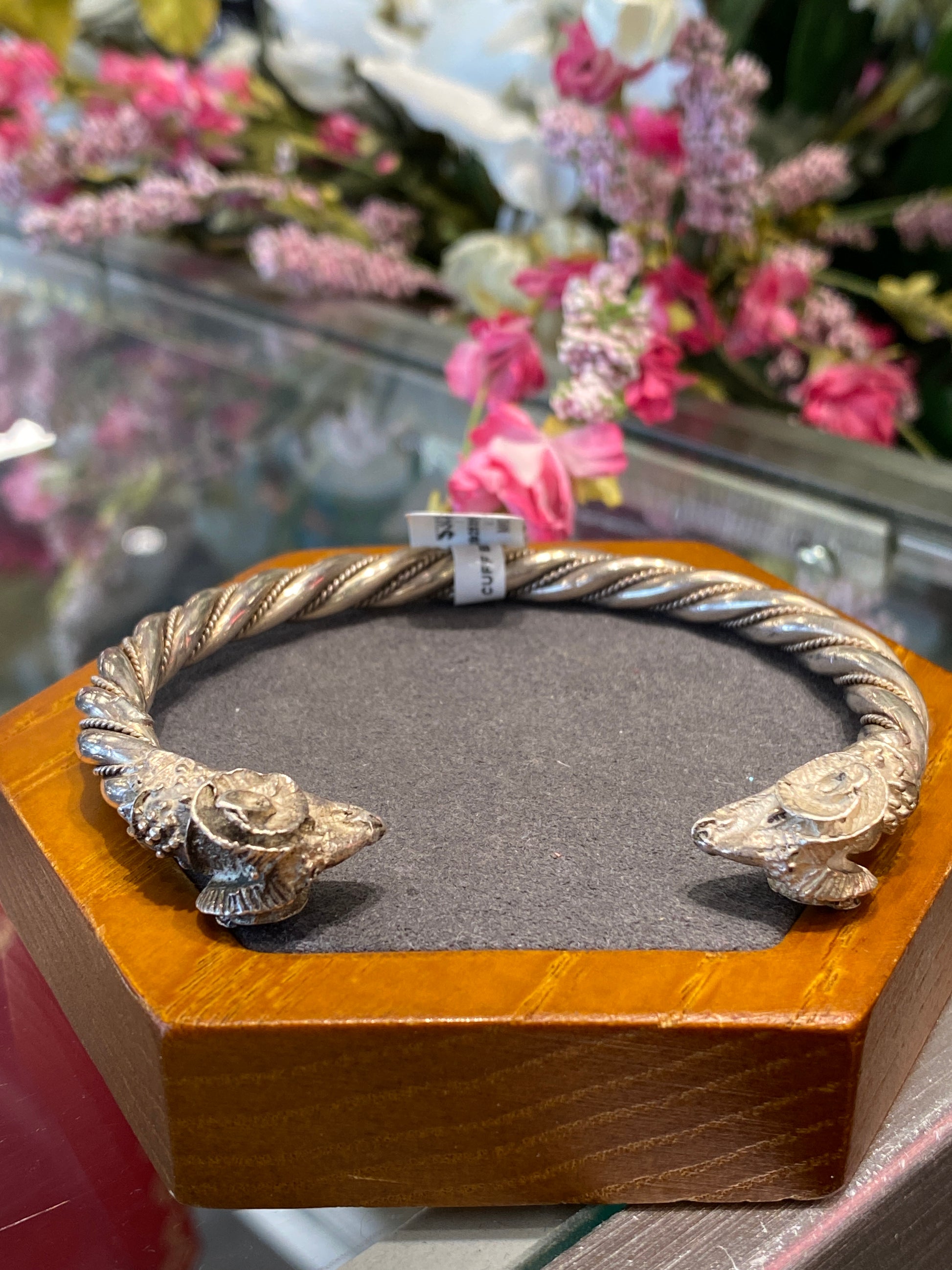 35.1 Grams Of 925 Silver Cuff Bracelet With Ram Heads.
