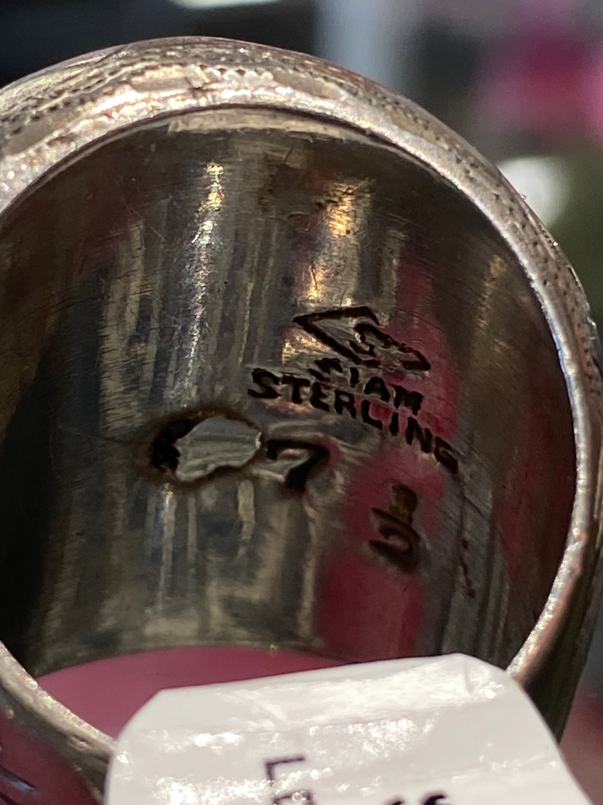 13.6 Grams Of 925 Silver Dome Ring With Design. Ring Is A Size 8