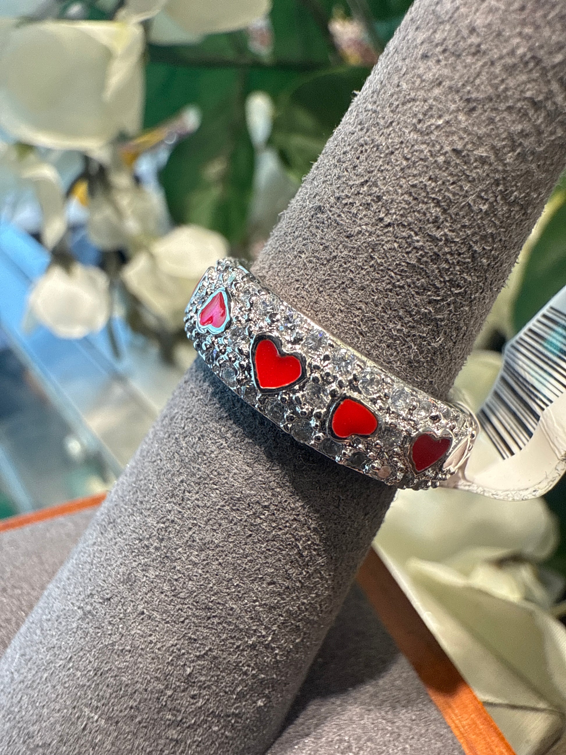 Silver 925 heart eternity band with cubic zirconia size 6 5.2g