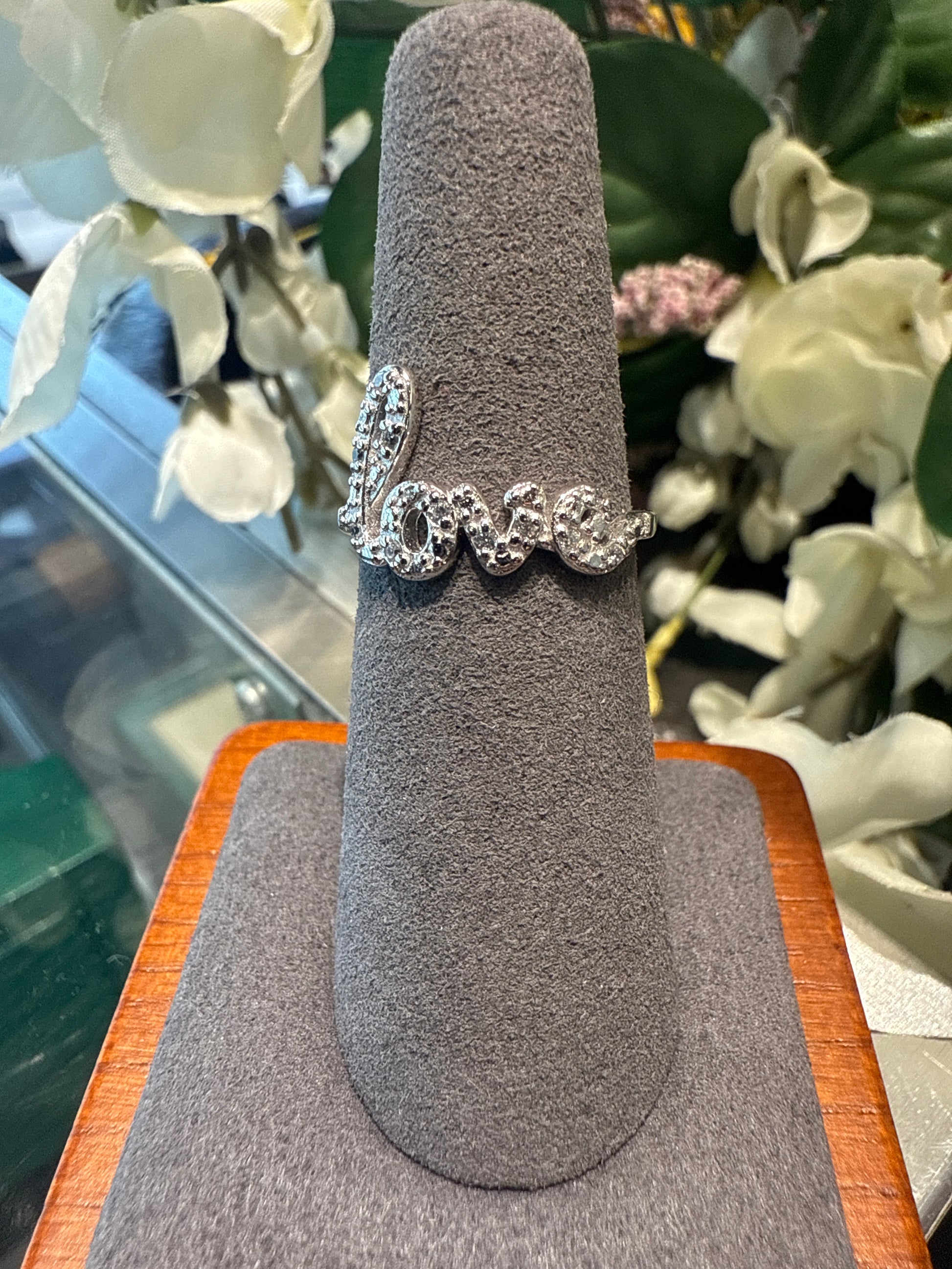 Silver 925 love ring with cubic zirconias size 6 2.1g