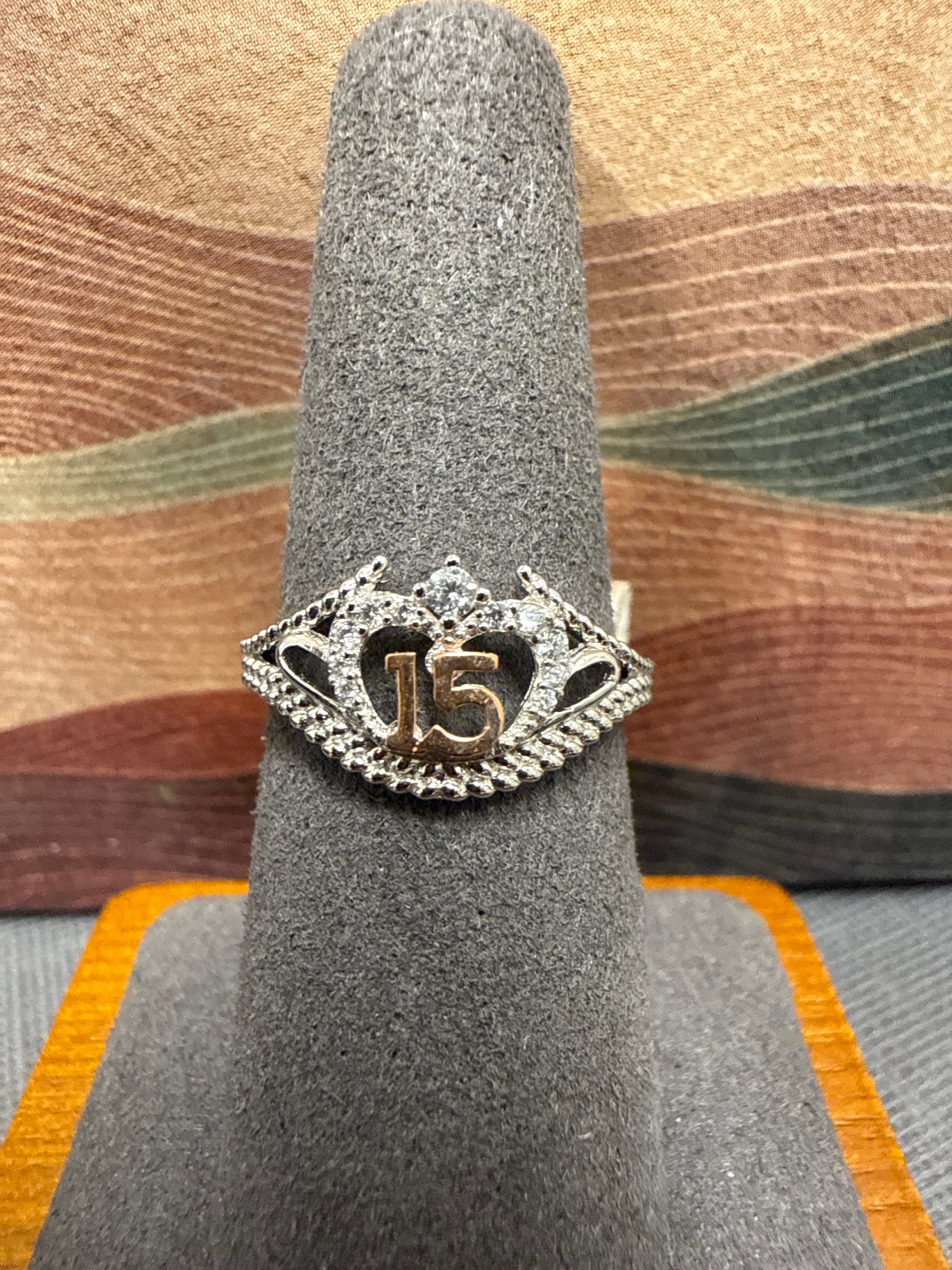 Silver 925 1.8g Quinceañera Ring with “15” and cubic zirconias size 6