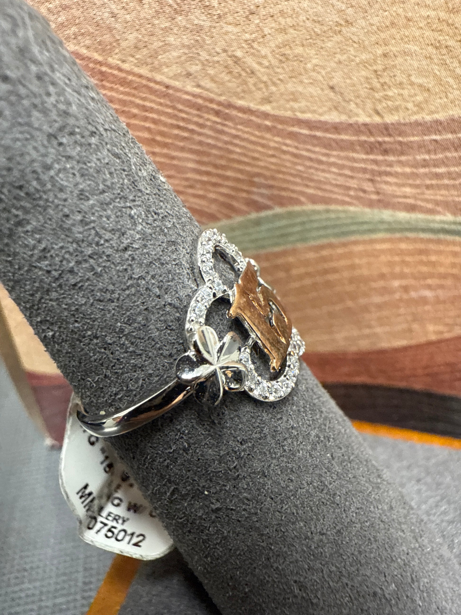 Silver 925 1.7g Quinceañera Ring with “15”, flower design and cubic zirconias size 6
