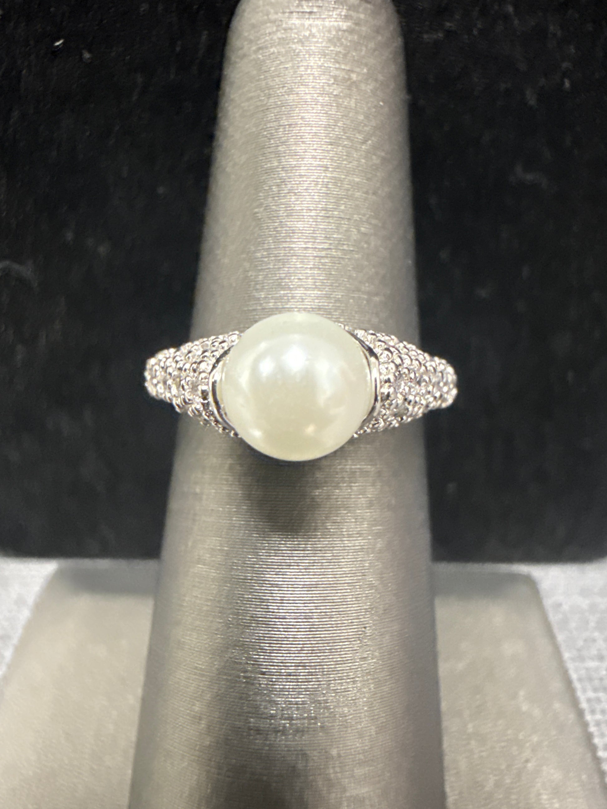 Silver 925 pearl ring w/ cubic zirconias 3.7g size 7