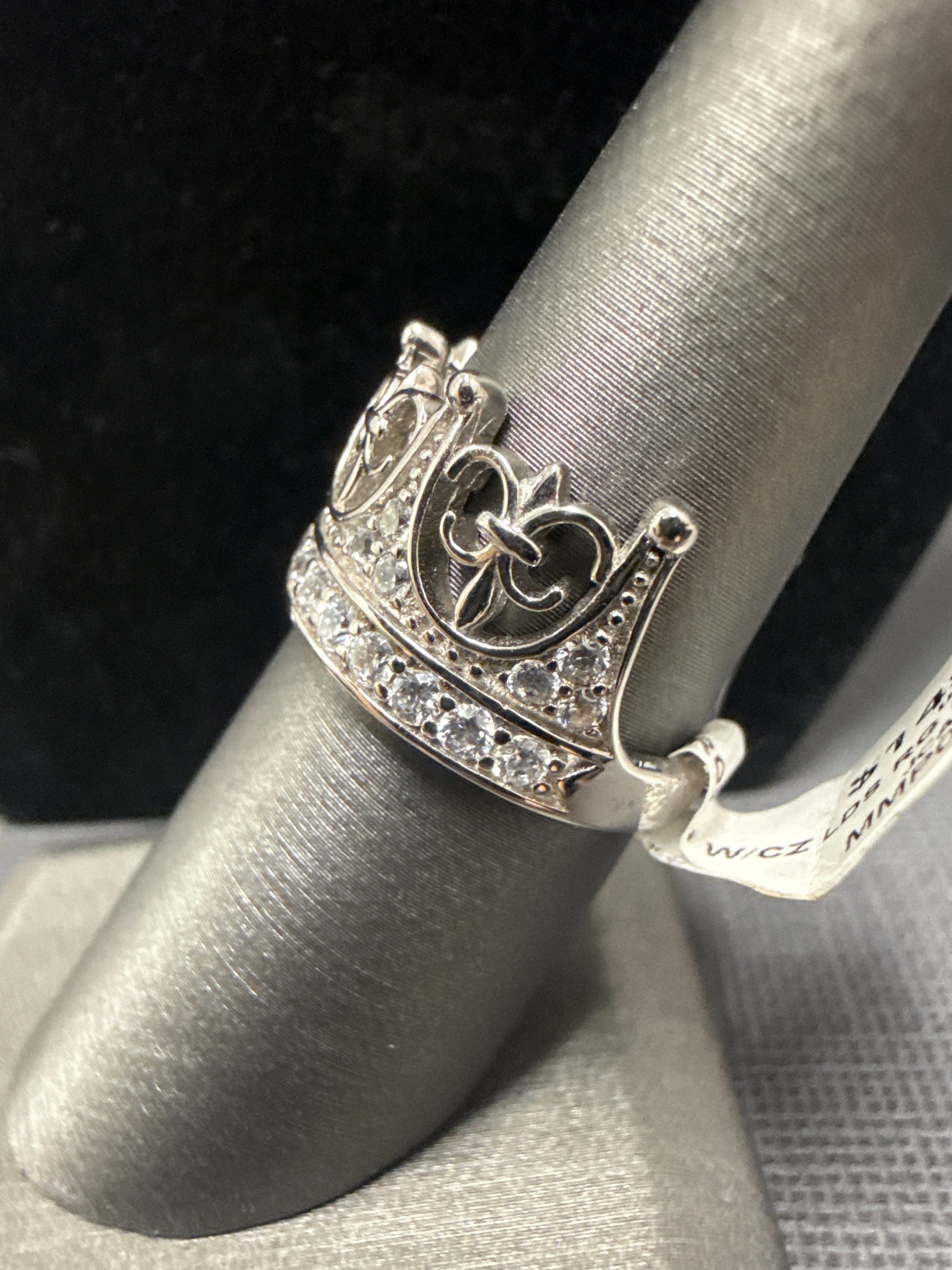 Silver 925 crown ring w/ cubic zirconias 5.8g size 7
