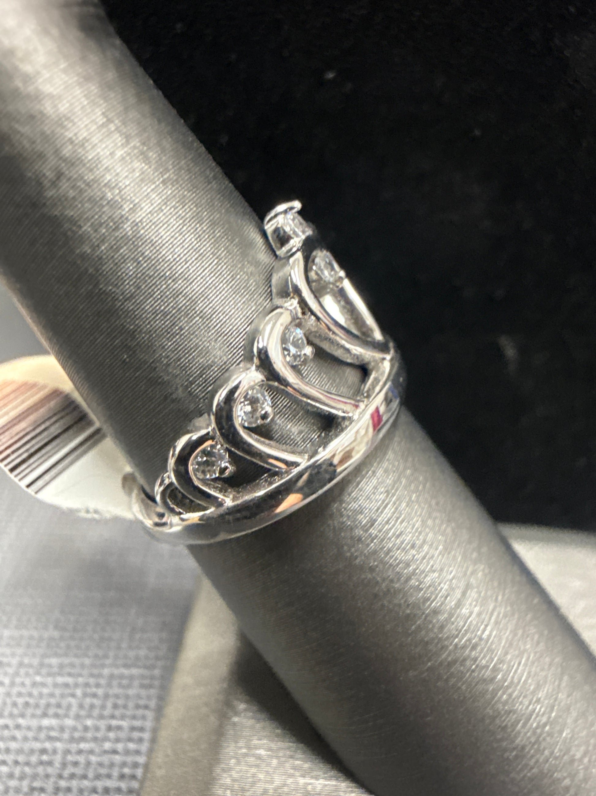 Silver 925 heart crown ring w/ cubic zirconias 3.6g size 6