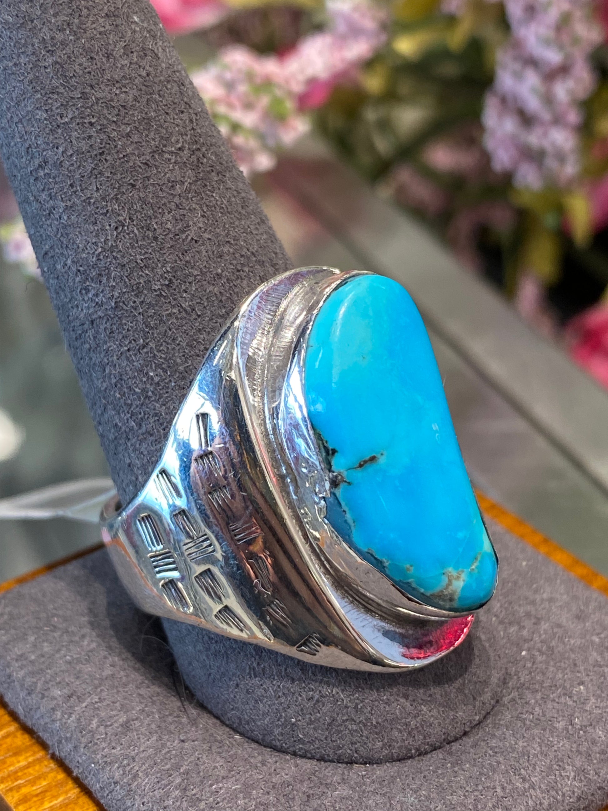 23.3 Grams Of 825 Silver Ring With Colored Stone. Ring Is A Size 11.5