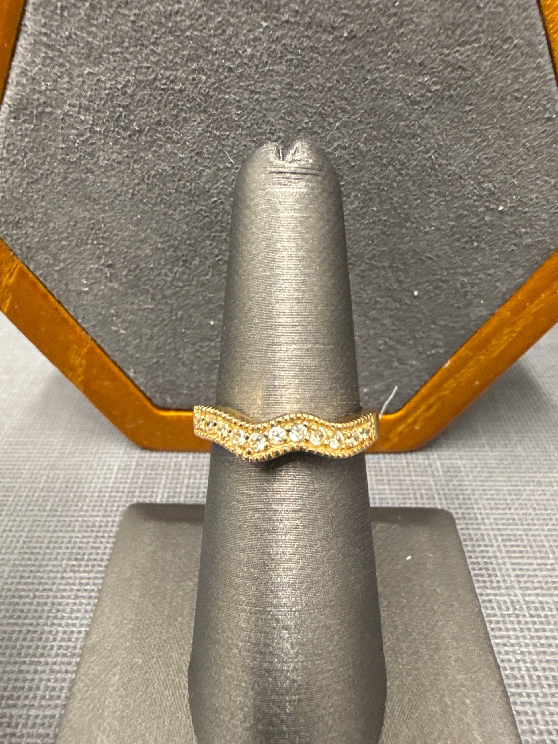 Silver 925 2.7g gold colored wavy ring W/ cubic zirconias size 7