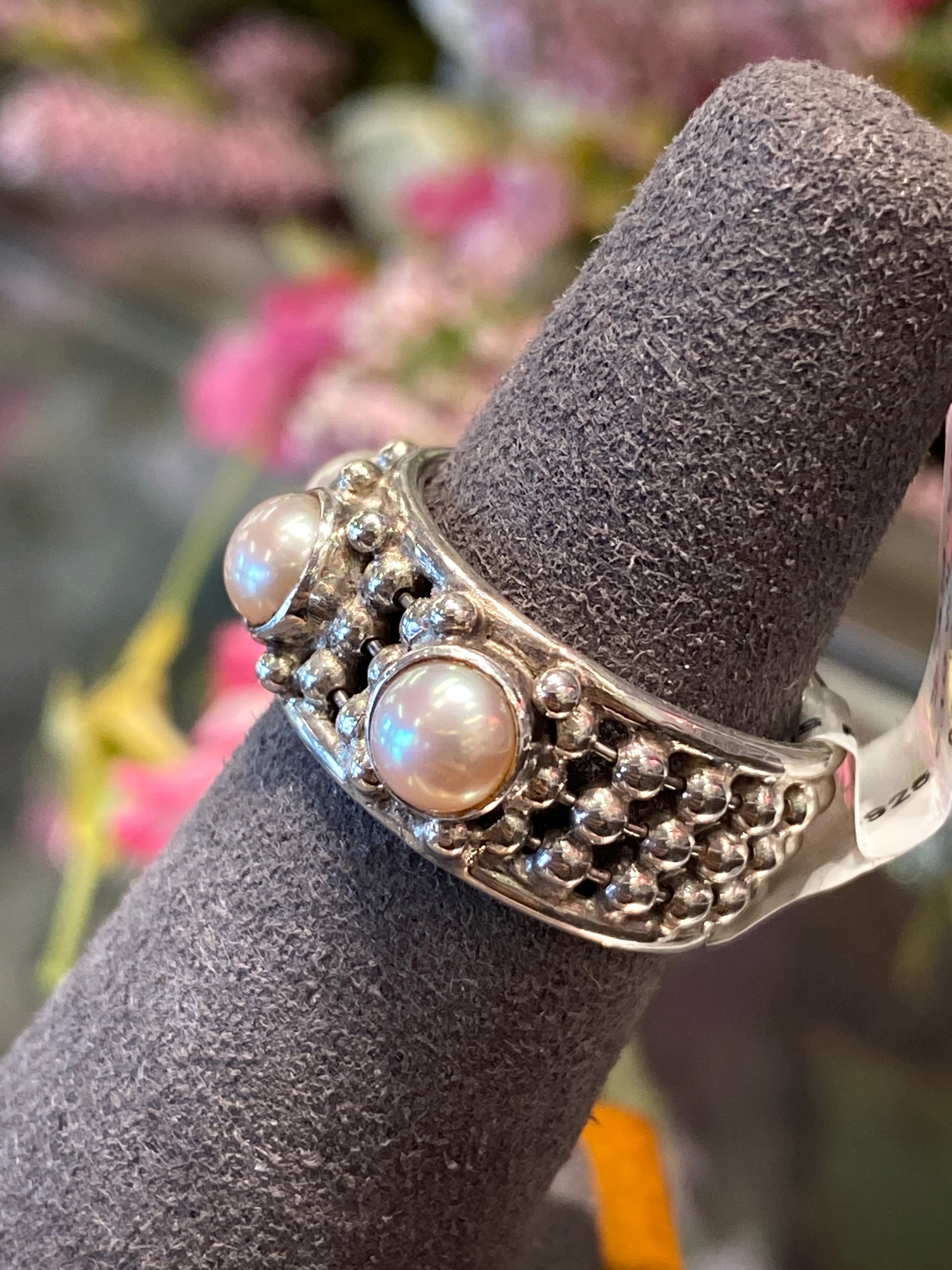 5.1 Grams Of 925 Silver Ring With Pearls. Ring Is A Size 5
