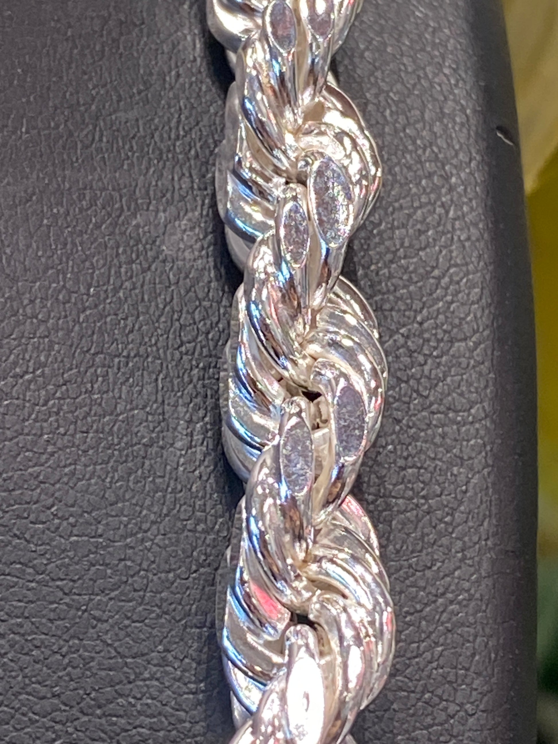 67.9 Grams Of 925 Silver Rope Chain. Chain Is 26” Long & 8.2MM