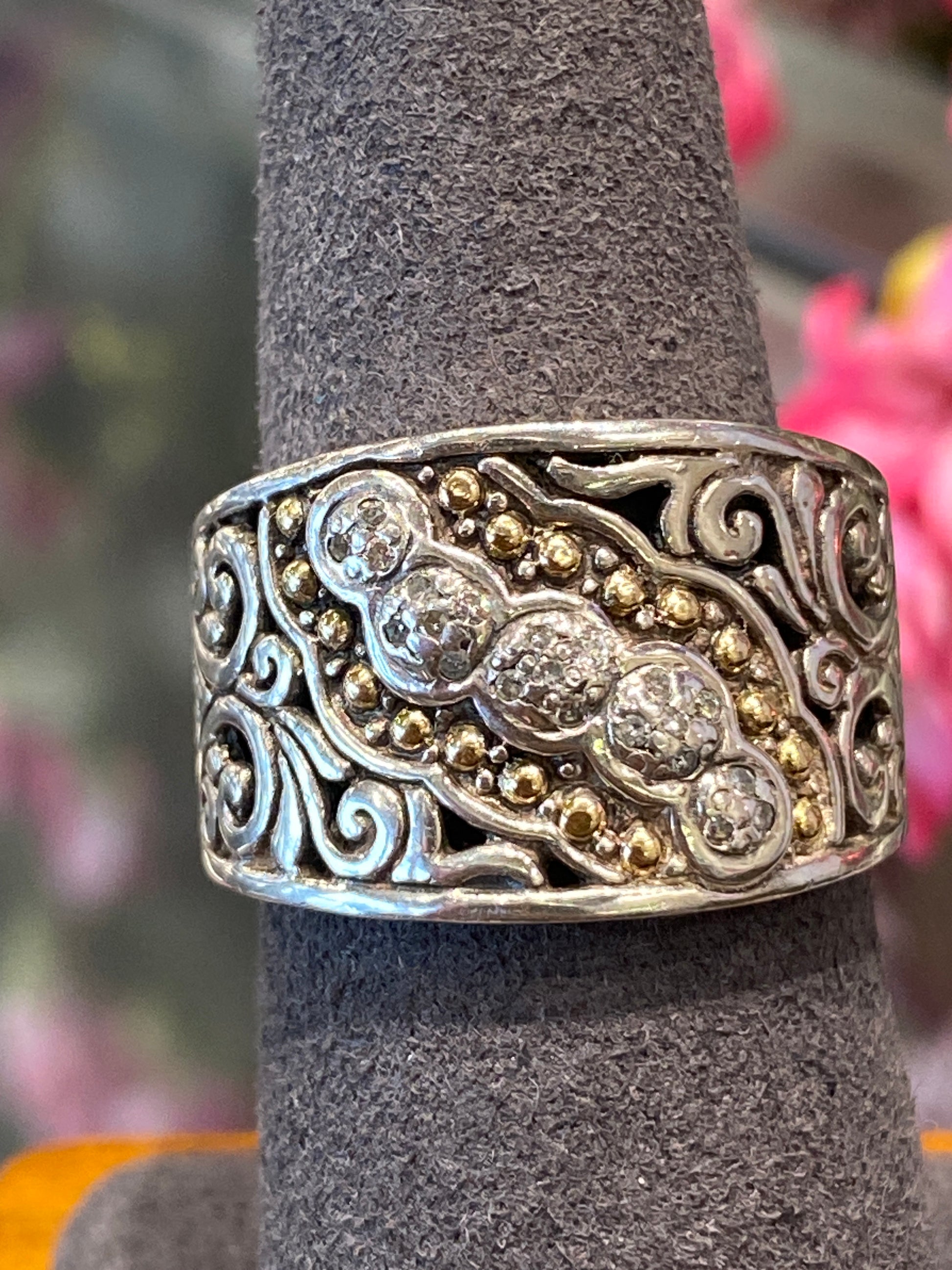 10.2 Grams Of 925 Silver Two Tone Ring With Diamonds. Ring Is A Size 6.75