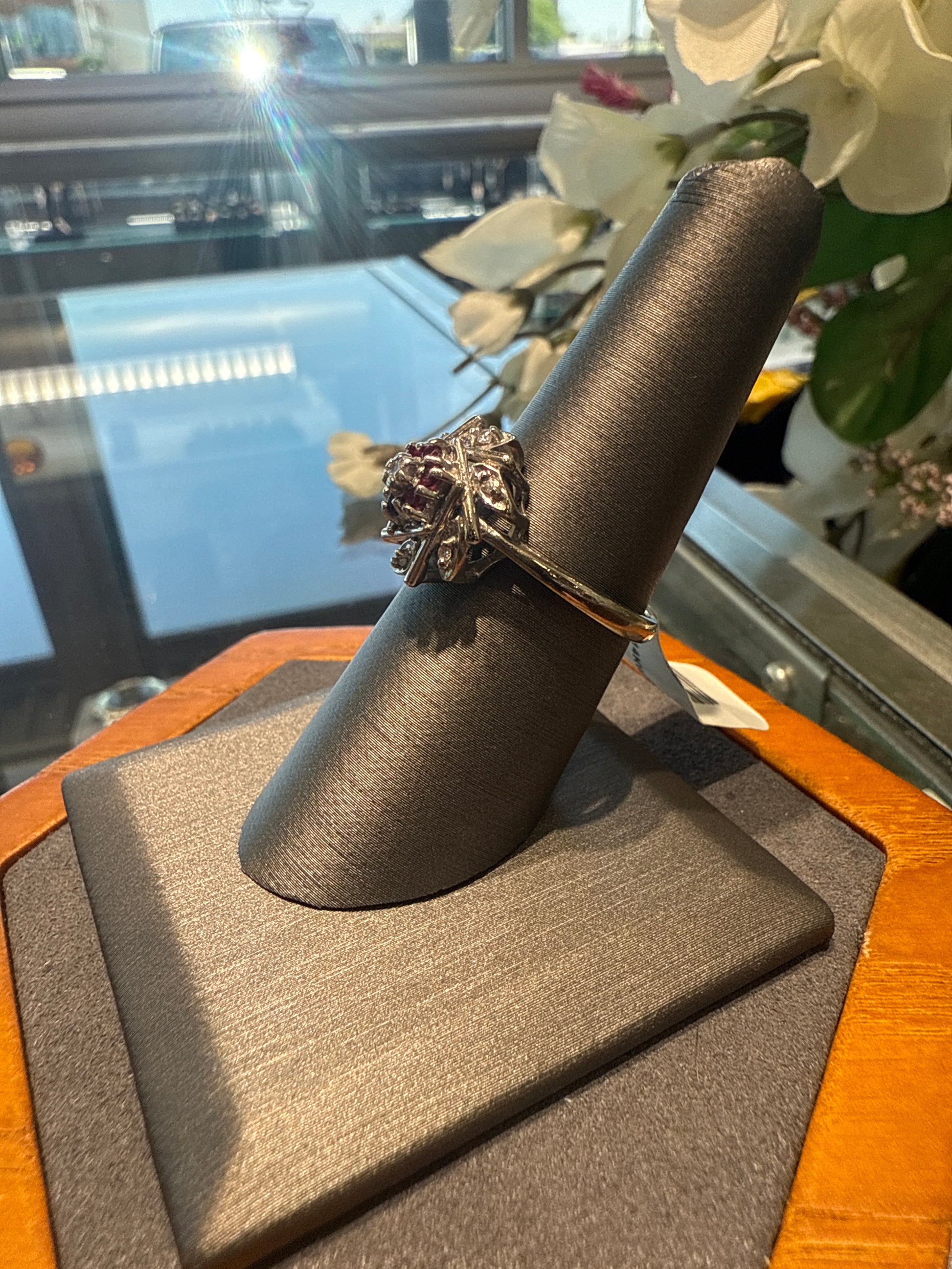 14k white gold ring with red stones and diamonds 3.8g size 7.5